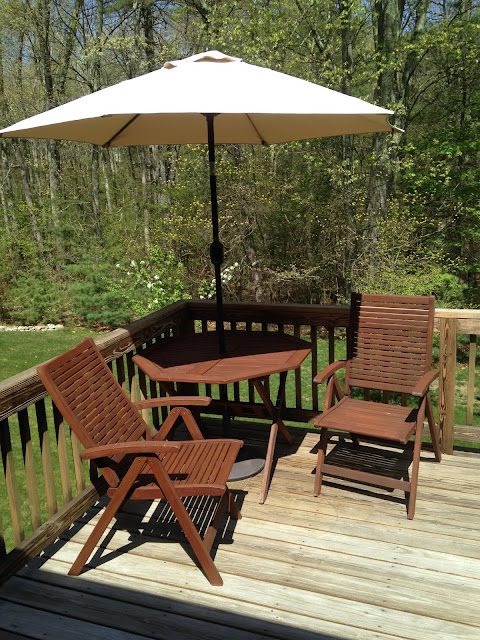 Mostly I'm not a sunbather (its too bright for reading) I get bored. Even at the beach I usually walk around or play in the sand. I do like sitting out on the deck when I have a cup of coffee in the morning so I got the deck set up earlier this week. It was a bit of a surprise when I dozed off in the sun yesterday. I'll allow it. The truth is I haven't had longer than 2 weeks off in 30 years, I figure I'm allowed a blissful little nap.